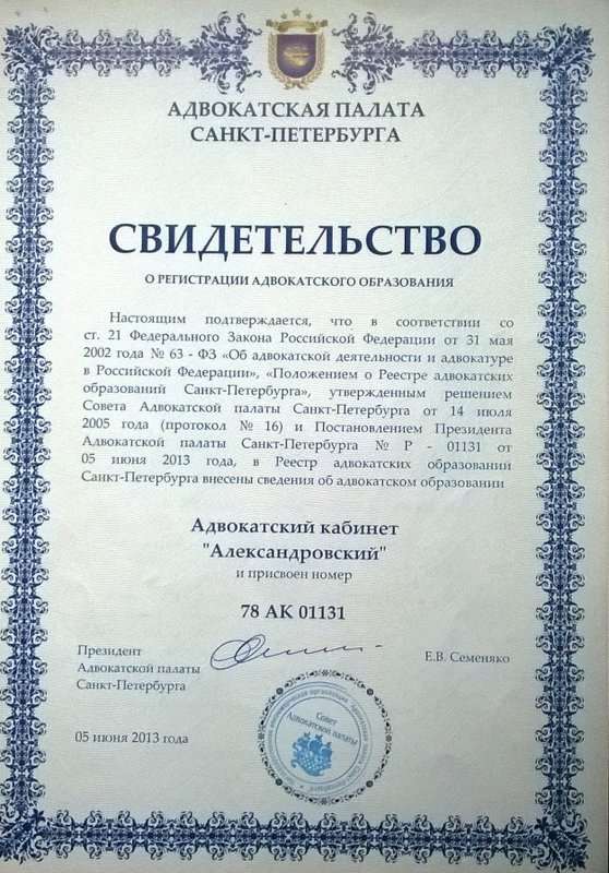Едва ли можно знать заранее, когда вам потребуется помощь грамотного юриста. Адвокатский кабинет Александровский предлагает успешное решение любых конфликтов в досудебном и судебном порядке. Для вас работают опытные юристы - специалисты с широким опытом работы - которые готовы ответить на ваши вопросы. Если вы находитесь в Красногвардейском районе, то смело обращайтесь по указанным номерам. Тем, кому необходима такая услуга, как юридическое обслуживание, двери конторы открыты всегда.